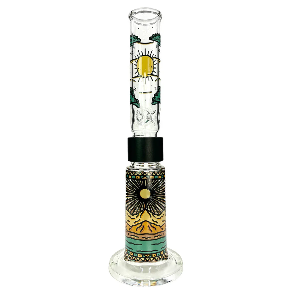 The Desert Dream'n Big Honeycomb Single Stack is Prism's optimal set up if you want a high functioning piece that's a comfortable size. This base is beefy, but makes the hit milky smooth. The function is perfect due to two honeycomb percolators and a straight percolator fixed downstem below the honeycomb pairs that evenly distribute the smoke throughout the honeycomb percolators. With our custom bong system, it's easy to break it down for ease of cleaning, part replacement, switching it up, and throwing in a backpack for an adventure.